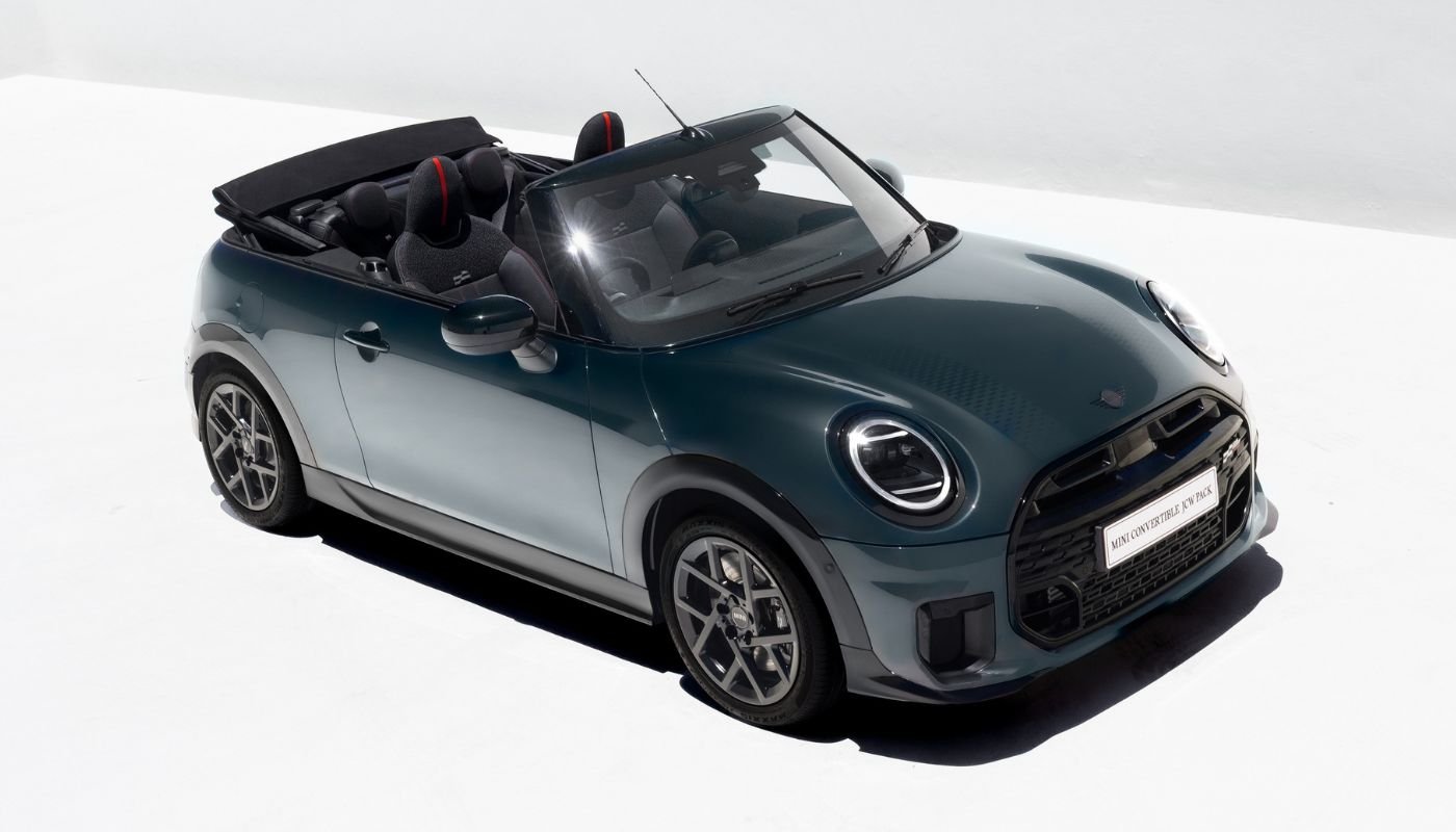 Mini Convertible JCW Pack gives a sportier visual identity inside and out; powered by a 2.0L turbo petrol engine producing 204 hp